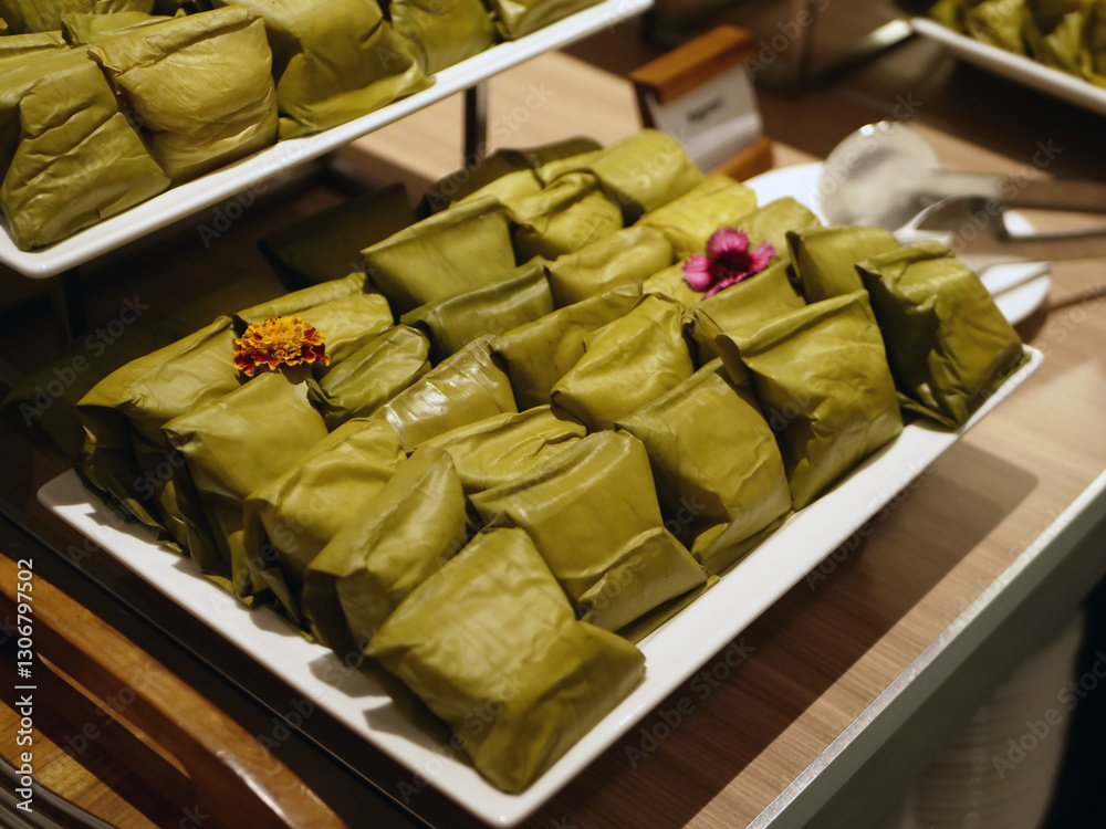 Tasty and appetizing cakes on the buffet table in a restaurant