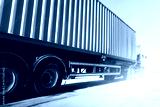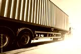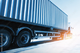 Semi Trailer Trucks on The Parking Lot with Sunshine. Tractor Truck. Big rig. Economy Business Transport on Road. Shipping Container Import- Export. Trucking. Freight Truck Logistics Transportation