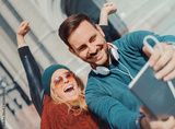 Beautiful young couple taking a selfie. Relationship and lifesty