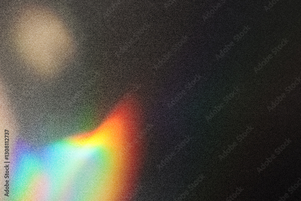 abstract gradient light leak lens flare vibrant colors, dynamic motion, grainy grain noise texture on dark background, vintage overlay nostalgic banner poster music cover design background.