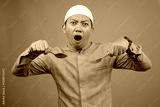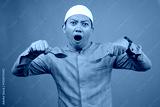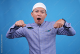 Smiling Young Man Holding Glass Ready To Drink On Iftar Time Over Blue Background