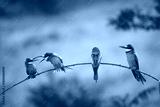 European bee-eater birds (Merops apiaster) in natural habitat perched on a tree branch in nature