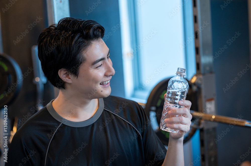 ジムで水を飲む日本人男性