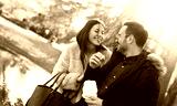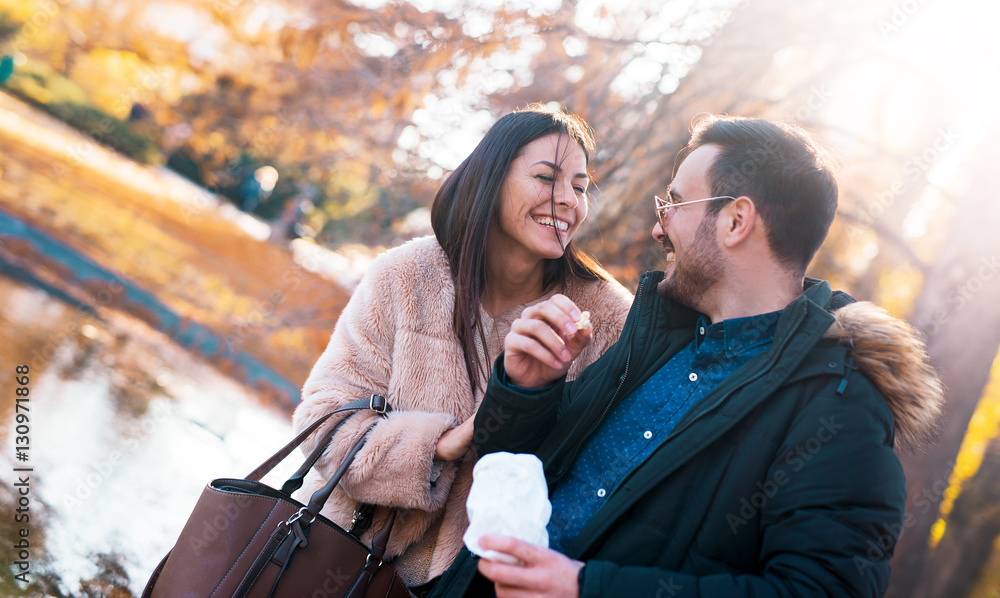 Romantic couple in autumn park. Love, dating, romance.