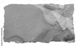 Piece of grey gray blank crumpled paper with rough texture and copy space for text, isolated cut out transparent png background design element