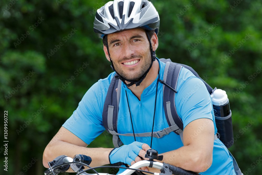 portrait of male cyclist wearing helmet