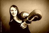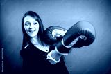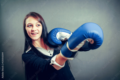 Businesswoman boxer, business concept sign - angry boxing woman.