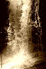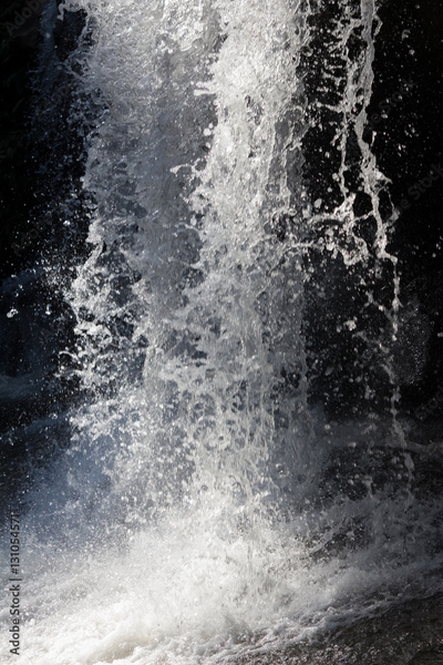 Waterfall stream. Black and white water spray