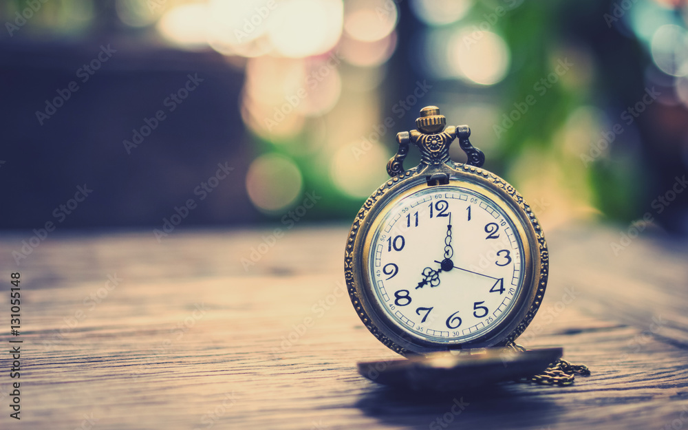 vintage pocket watch on grunge wood log