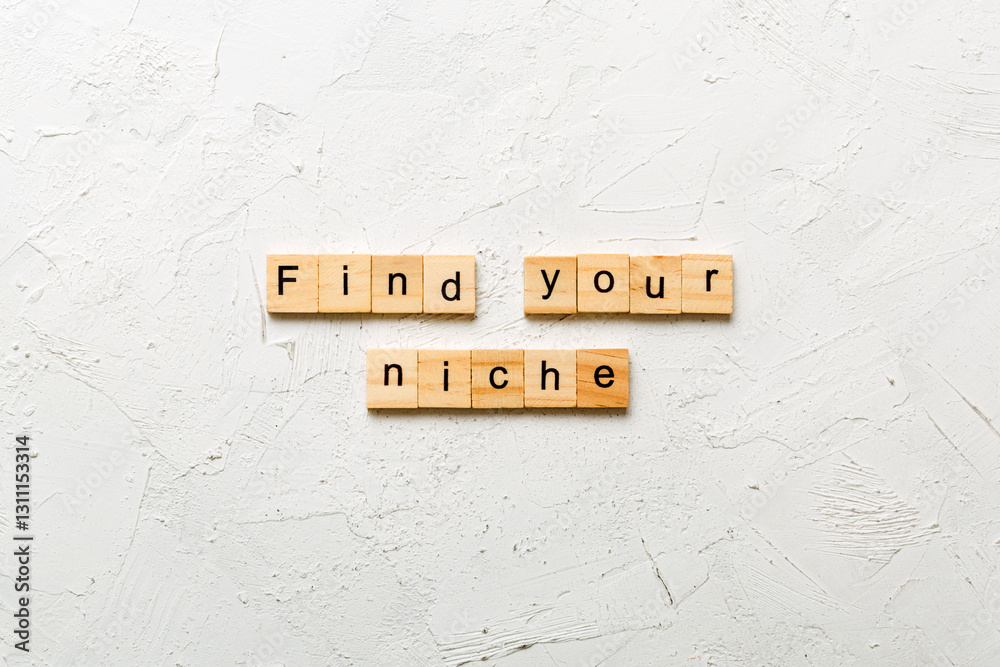 find your niche word written on wood block. find your niche text on table, concept