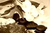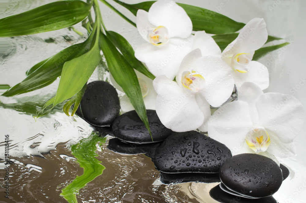 spa Background - orchids black stones and bamboo on water
