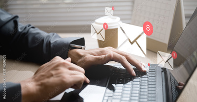 Email receive invitation contact. Newsletter mail reminder. Interface send receive.