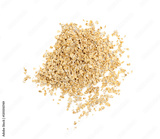 Dry raw oat flakes isolated, rolled flat grains, instant porridge, thin cereals, flattened grains group