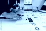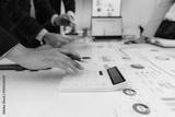 A team of professionals work together in an office to analyze financial charts, market strategies and work as a team to drive business growth and success.