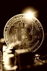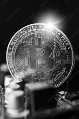 Criptomonedas y tecnología Bitcoin.Monedero digital con bloque encriptado. Concepto de blockchain y moneda global. Transacciones económicas a través de internet.