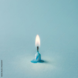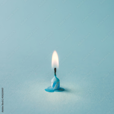 Burnt out candle on blue background. Minimal timeline concept.