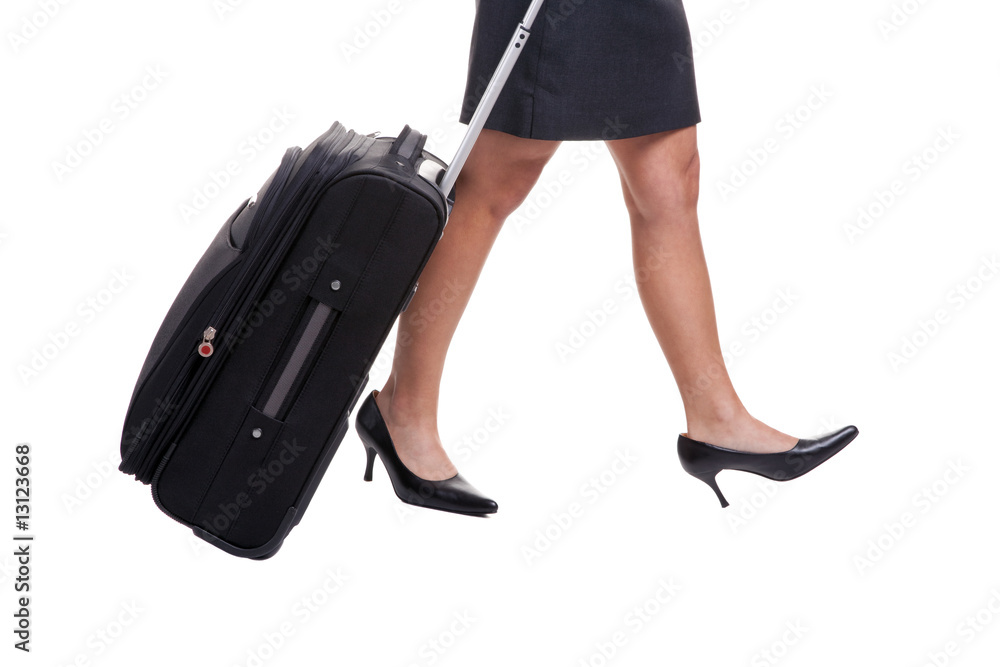 Businesswomans legs with suitcase