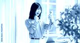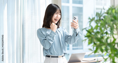 スマートフォンを見て喜ぶ女性・ビジネスウーマン