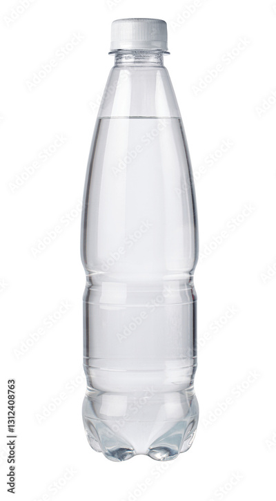 Plastic water bottle showing freshness and purity on white background