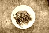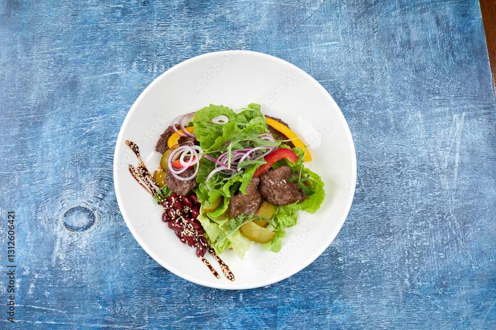 salad with beef in the white plate