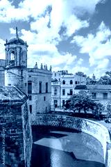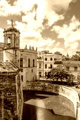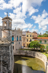 Havana Castle Of The Royal Force spanish fortress walls and moat with tower and city in the background, Havana, Cuba