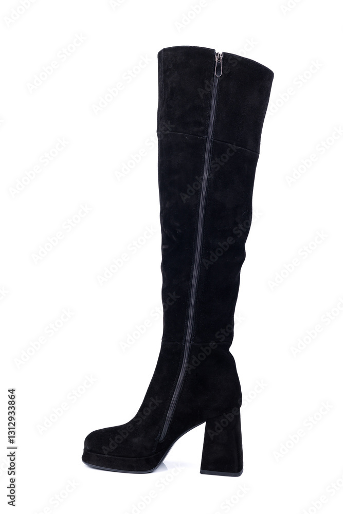Black women's leather boots. Women's fashionable classic boots.