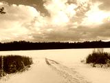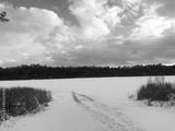 A frozen lake in the wintertime