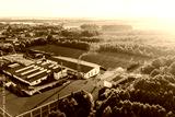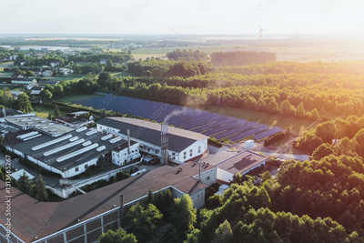 Industrial Complex Using Wind and Solar Energy at Sunset