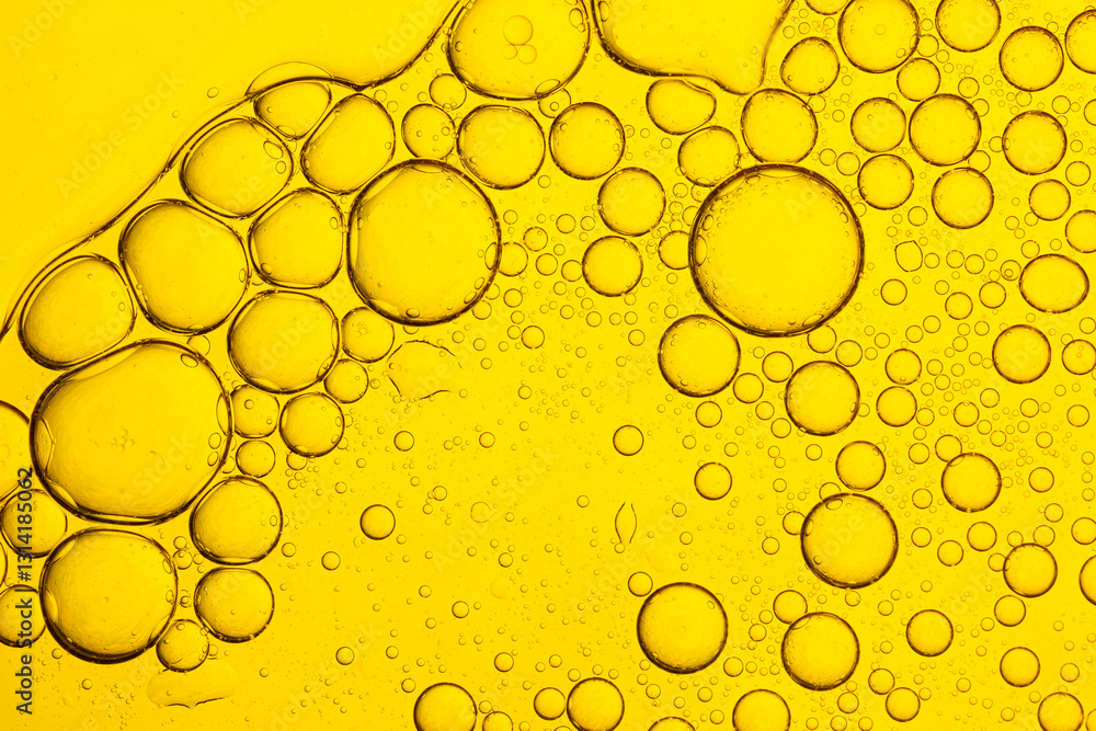 Macro close up of yellow bubbles,Close up of yellow gold liquid and bubbles,