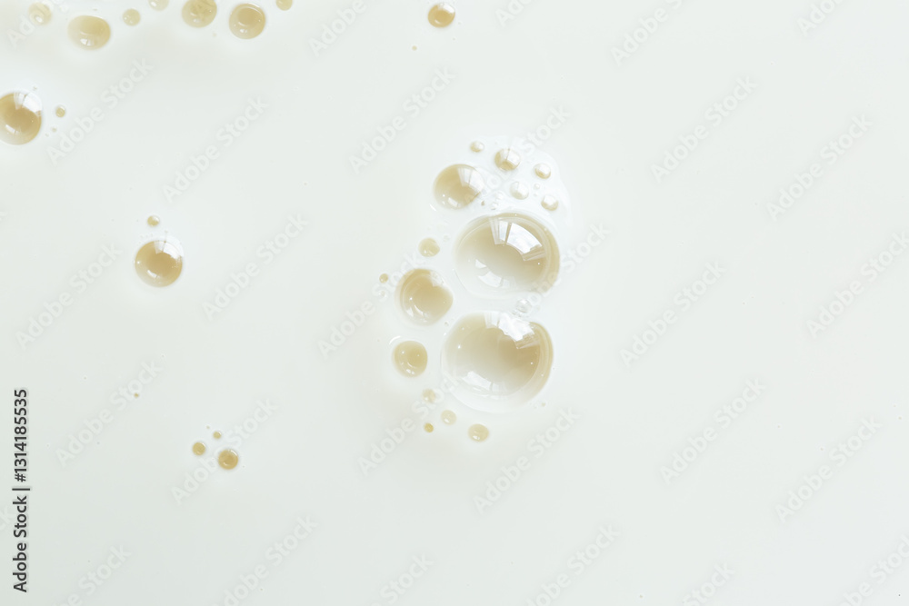 Macro milk texture,macro milk background,White surface of milk and bubbles and ripples from above birds eye view