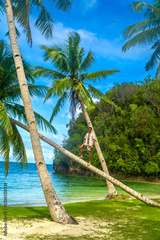 Tourist enjoying tropical vacation on kangbangyo island, siargao, philippines