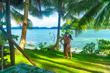 Couple enjoying tropical vacation in kawhagan island, philippines