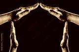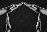 Hands in Black and White in Home Symbol Sign on Black Textured Background with Copy Space