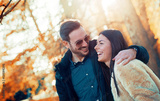 Romantic couple in autumn park. Love, dating, romance.