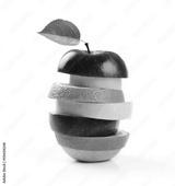 mixed fruit slices isolated on white