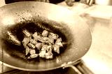A chef skillfully stir-fries colorful pieces of vegetables in a hot wok, showcasing vibrant colors and delicious flavors in a professional kitchen setting.