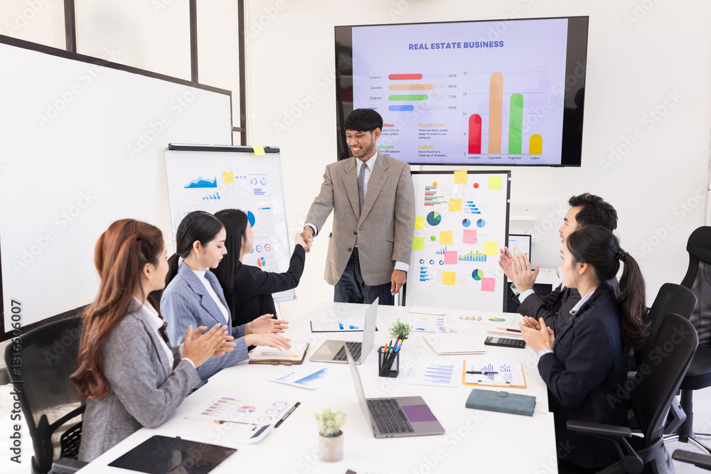 Group of business people shaking hands and partnership at meeting in corporate office, Team of business people handshake concept.