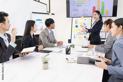 Group of business people working together with dashboard analysis and data management a meeting table in office.