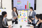 Group of business people working together with dashboard analysis and data management a meeting table in office.