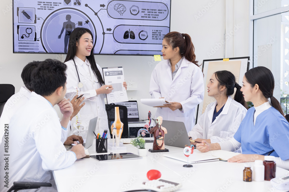 Group of Asian doctor working together and brainstorm at the clinic, Healthcare and medical meeting concept.