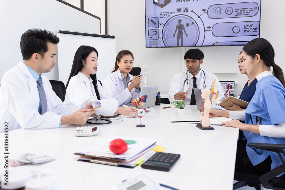 Group of Asian doctor working together and brainstorm at the clinic, Healthcare and medical meeting concept.