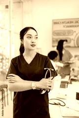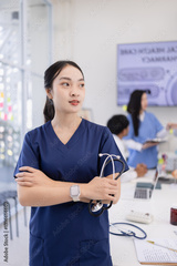 Female doctor holding stethoscope, Healthcare and medical concept.