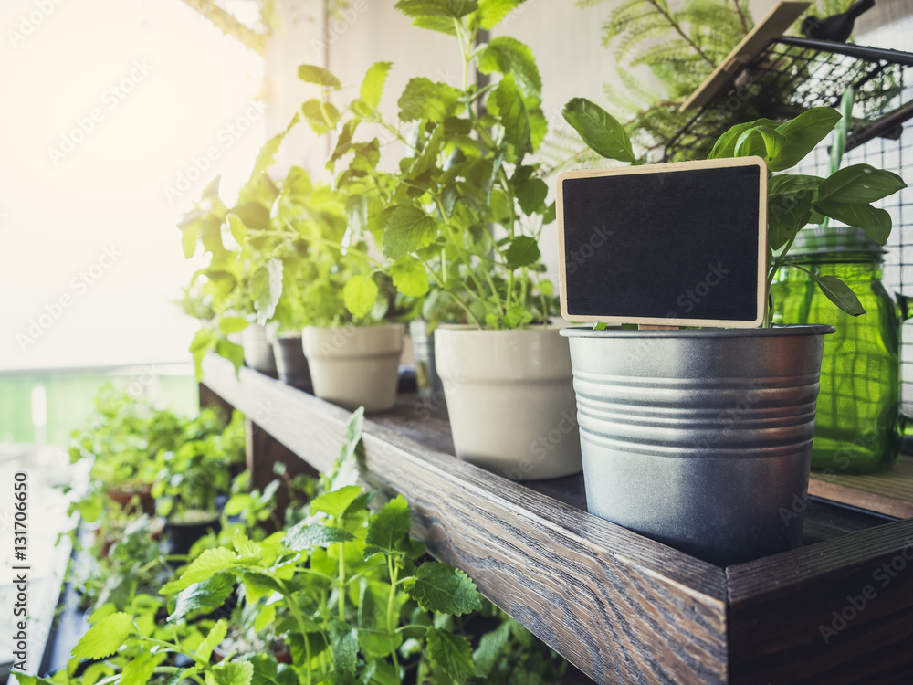 Blank Name plate sign on Pot Herb Plants Home gardening