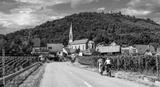 Alsace region of France - famous "wine route" and popular tourist destinations. beautiful vineyards and traditional village Husseren les chateaux.