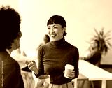 business meeting businesswoman woman young office presentation colleague teamwork standing walking conference seminar break coffee