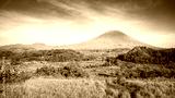 Nature landscape tropical island with scenery rice field and volcano on nature background