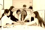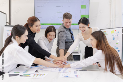 Group of business people shaking hands in meeting room office, People staff huddle for team building and working together, Business about successful startup projects concept.