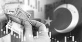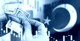 Financial crisis in turkey. Hands with dollars near Turkish flag. Crisis chart near symbol of turkey. Concept reducing rate of investment in government bonds. Banking crisis in turkey. Lira recession
