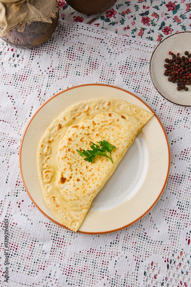 Rustic Presentation of Kûtâb with Cheese on Lace Tablecloth