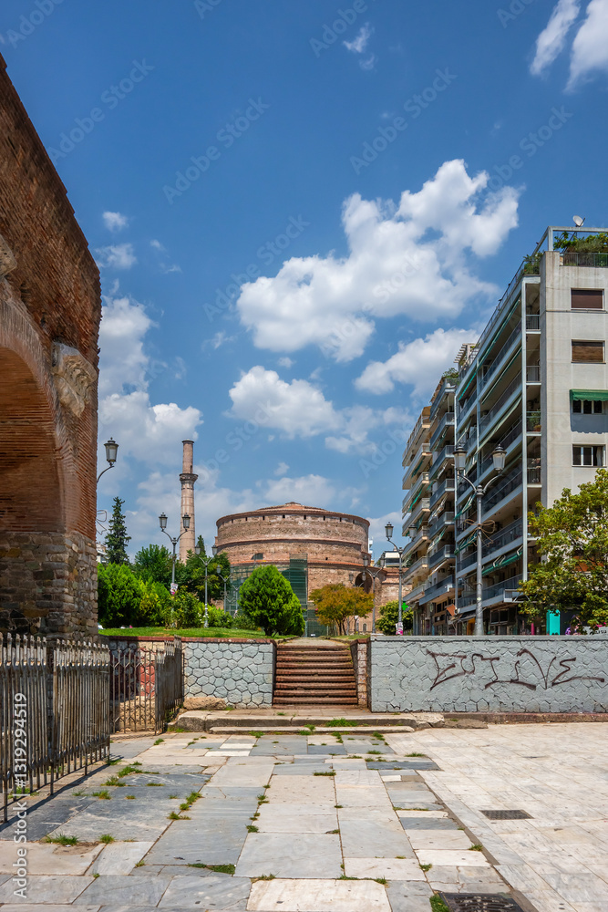 Rotonda, a circular roman building with the early christian mosaics, and Arch of Galerius. Thessaloniki, Greece.